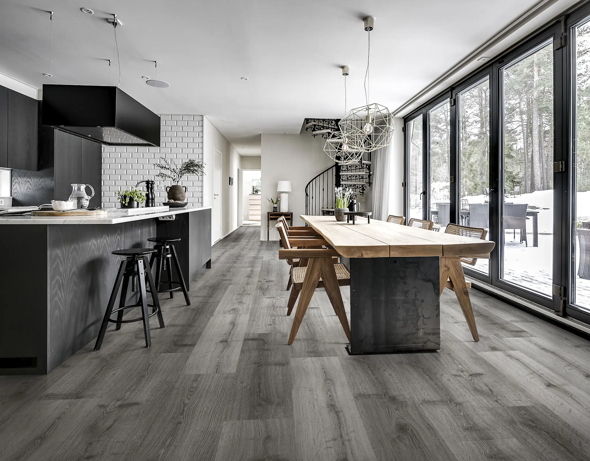 Discover Kährs Didnok Click 6mm Luxury Vinyl Flooring, a striking addition to the Kährs Nordic Classic Collection. With over 160 years of Swedish craftsmanship, Didnok features deep, dark grey shades with rustic wood grain, knots, and cracks, enhanced by synchrone embossing for an authentic wood look. Available now in our WooCommerce flooring store.
